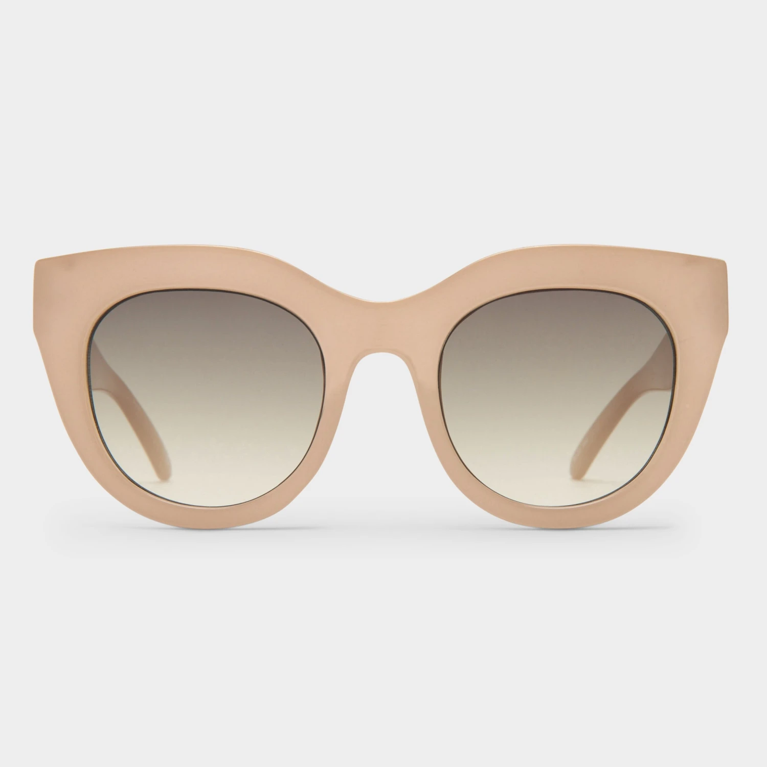 A favorite of Meghan Markle and Olivia Palermo, the AIR HEART silhouette is an iconic Le Specs style. With oversized and dramatic proportions reminiscent of a cat eye, the style is designed with a thick semi-translucent tan frame and luxurious metal top bar inlay, then fitted with premium zero base smoke flat lenses. The perfect statement sunglass to suit all face shapes.