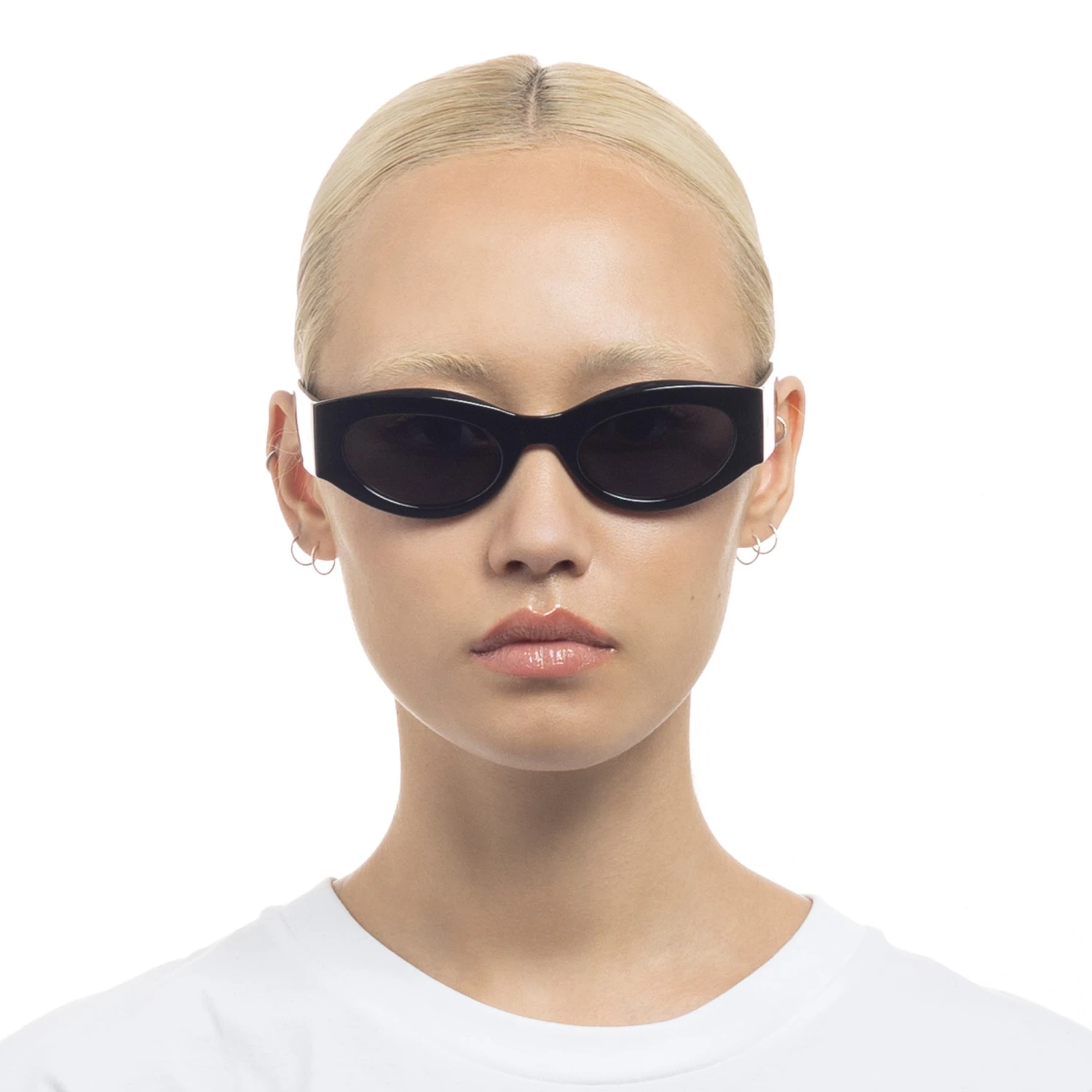 Offering a modern update to the minimalistic 90s look, our BODY BUMPIN II sunglasses are designed with a wide fit, narrow esthetic and slightly wrapped silhouette. Finished with Le Specs geometric flag stripe buckle hardware on both temples, these frames are a wardrobe staple.