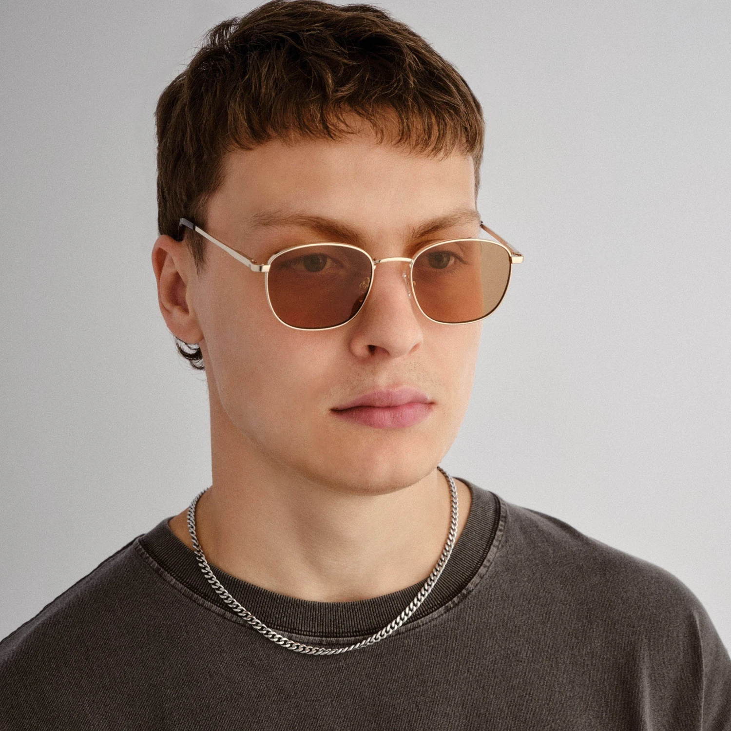 • Finished in a gold frame with light brown mono lenses.