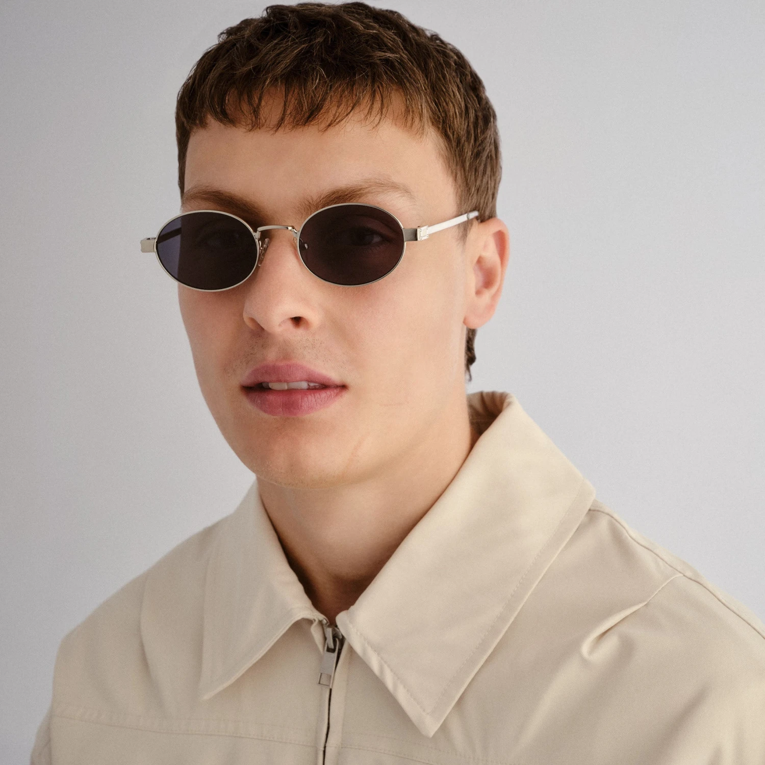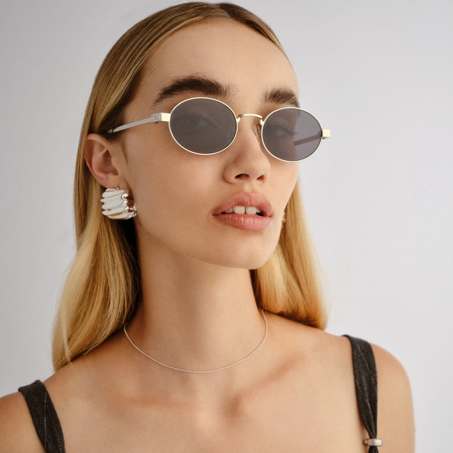 Defined by its refined oval profile, our POSEIDON DEUX sunglasses are an ode to early ‘90s minimalism. Designed with three-dimensionally crafted metal flag stripe hardware on the temples, this flattering unisex style features adjustable nose pads for a bespoke fit.