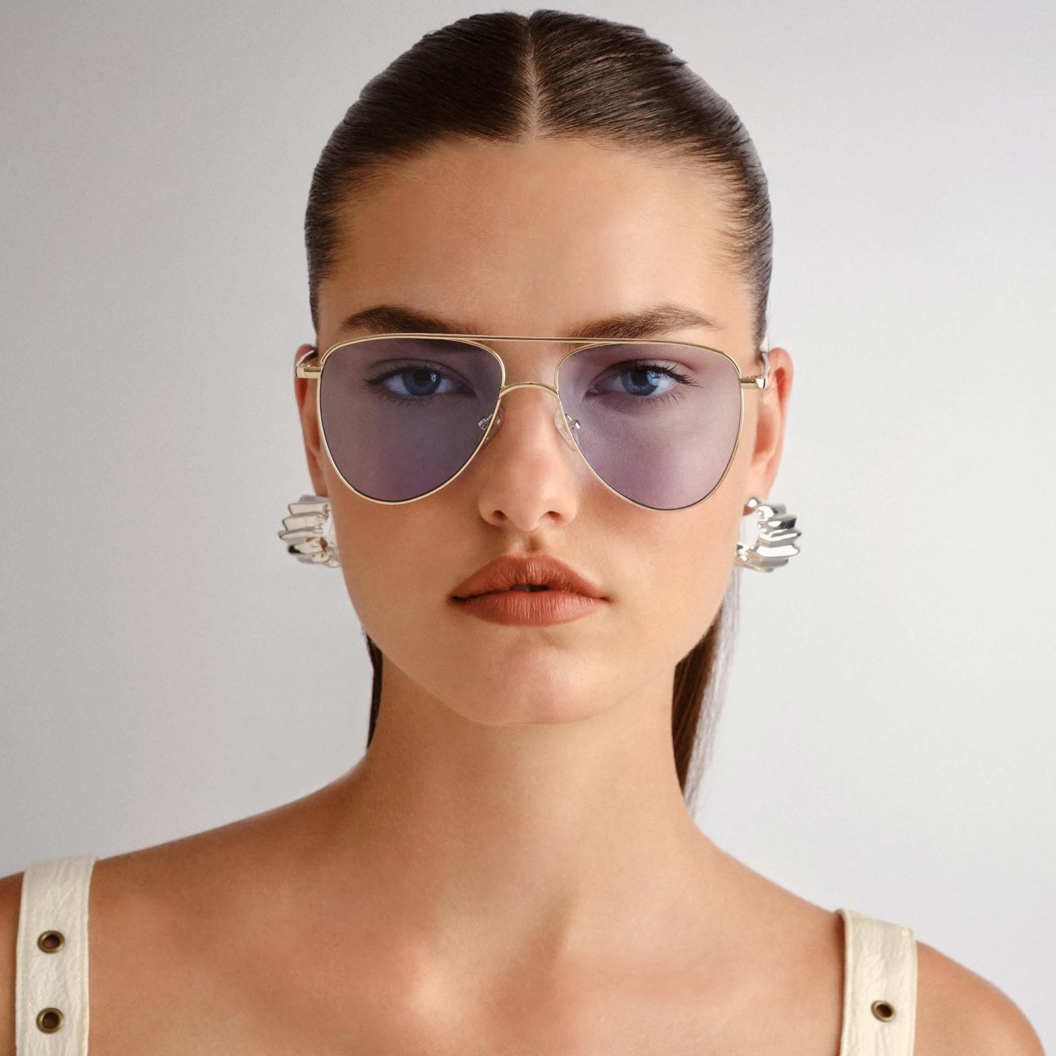 Crafted with contemporary details and timeless proportions, THE DUKE aviator sunglasses are your ideal pair of versatile and standout look. Highlighting an innovative flat lens and designed to flatter all face shapes, this style is finished with sleek and refined metal temples and adjustable nose pads for a personalized and comfortable fit.