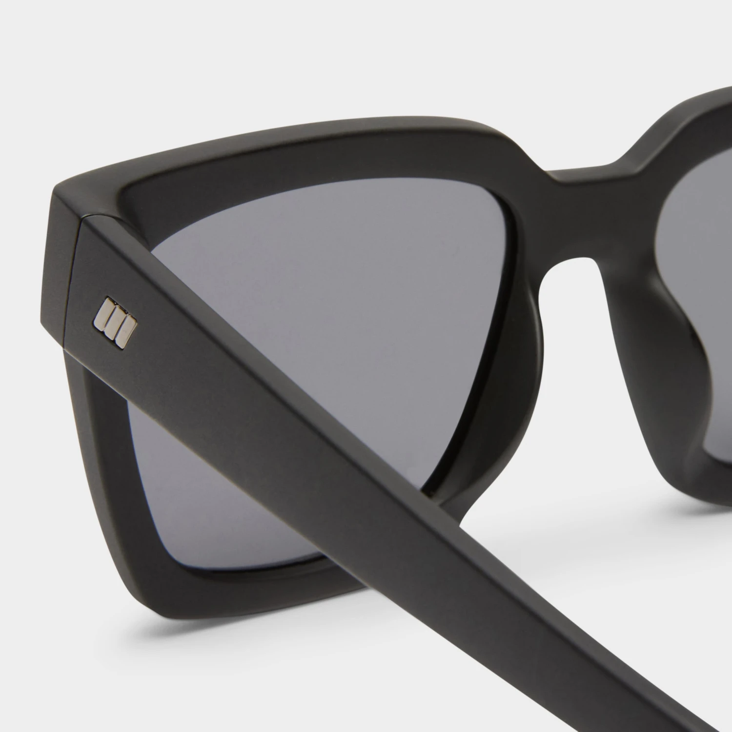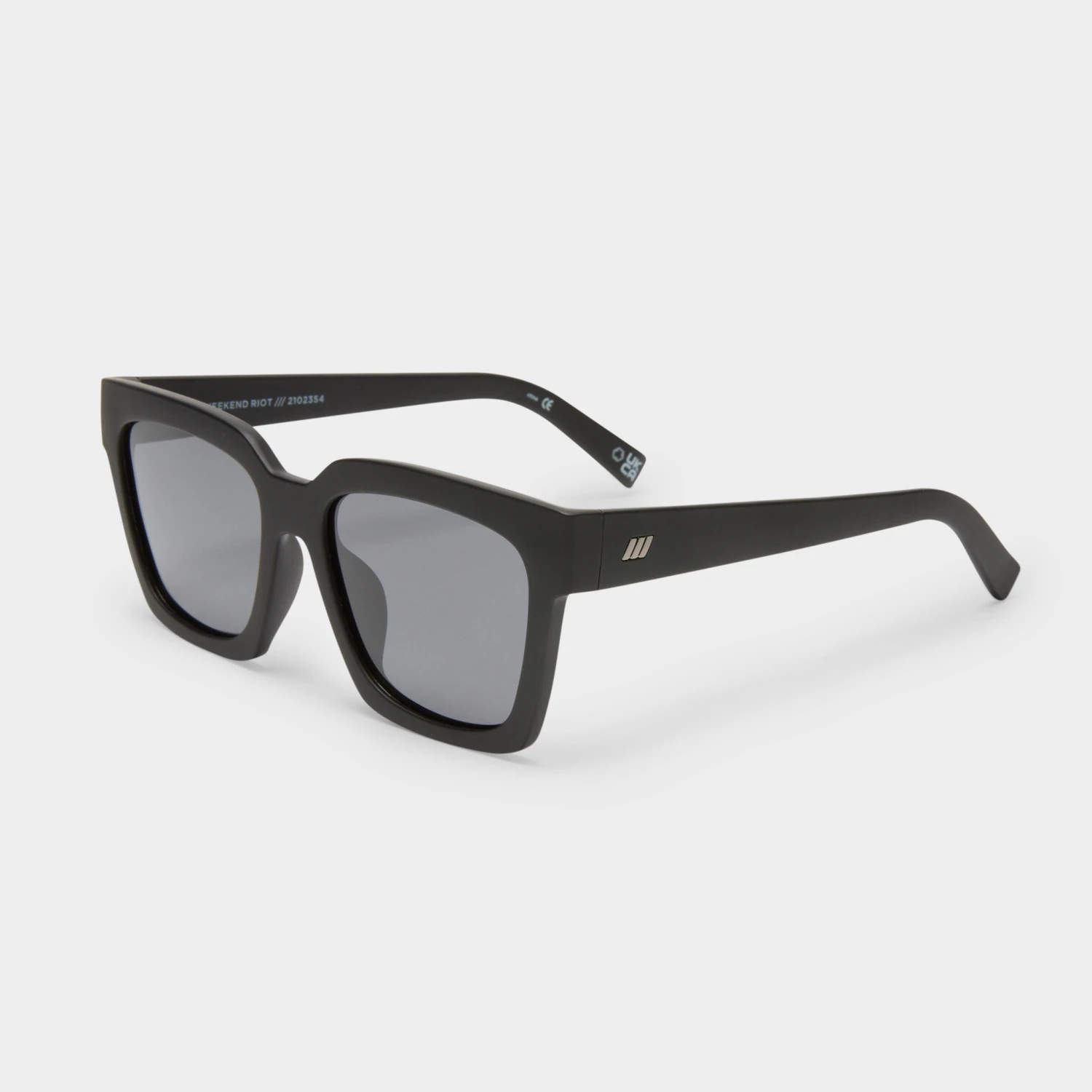 Offering an oversized fit for larger faces, WEEKEND RIOT is a modern D-frame silhouette that focuses on comfort and fit. With lenses fitted to provide maximum UV protection, each style is subtly finished with iconic Le Specs flag stripe metal hardware on both temples.